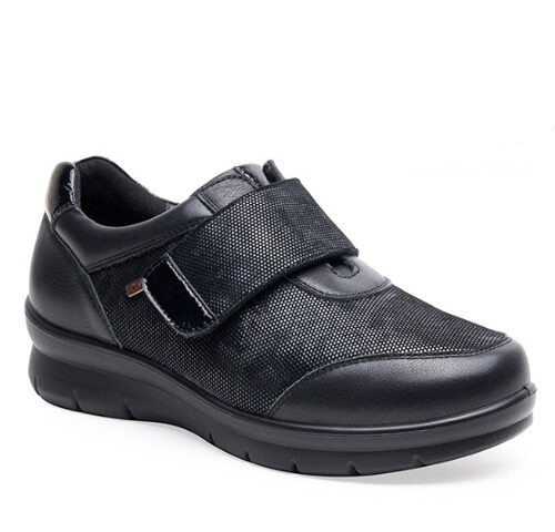 Merceditas con horma de Ancho 13 especial para pies anchos y delicados. Esta fabricada en la parte delantera con una licra foamizada y elástica que junto con un ribete elástico en el empeine, permite que se adapte a cualquier patología de pie, tales como juanetes, dedos martillo, dedos garra, etc. etc. Tiene una tira de velcro en el empeine que permite ajustar bien el zapato, evitando la sensación de que el zapato se descalza al caminar. La horma tiene mucha capacidad tanto para pies gruesos como plantillas ortopédicas con volumen. Es un zapato de pala elástica para caminar estupendamente todo el día.
